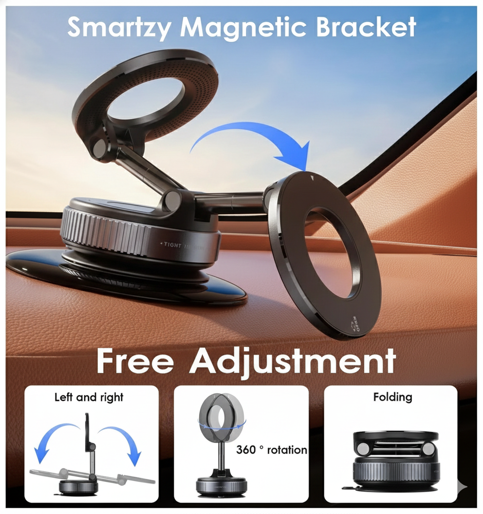 Ditch the Drops, Embrace the Grip: Say goodbye to flimsy mounts! Our Smartzy Magnetic Bracket features an advanced vacuum suction that locks onto surfaces like glue, providing an unshakeable hold for your phone—even over potholes or during intense filming sessions.